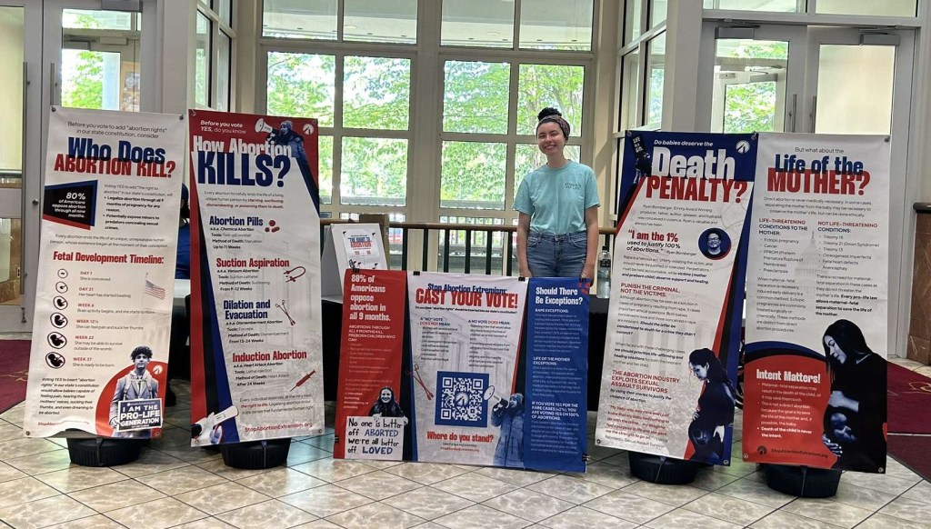 “I want to have civil conversation and discord around a very divisive issue, and changing hearts and minds is always our end goal because we want abortion to be illegal [in] America, but particularly we want people, if they’re voting or haven’t considered what the reproductive amendment is about, to consider that before going to the polls as well.”