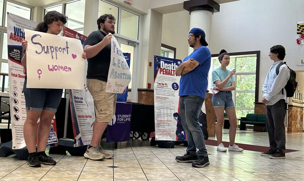 “We used to have a students for life group on campus, and it fizzled out a few years ago because people graduated, and so we’re here today partially just to have a conversation with students about the reproductive freedom amendment that we’re going to be voting on in November in Maryland.” she said.